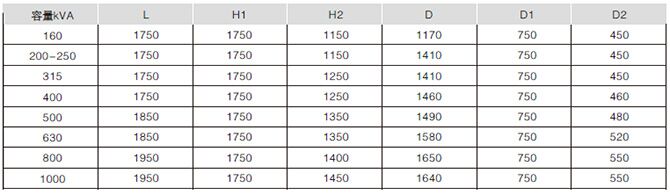 注:a.根據(jù)用戶要求變壓器的高壓分接范圍可設(shè)計(jì)為±2×2.5%; b.根據(jù)用戶要求變壓器的低壓可設(shè)計(jì)為0.69KV。